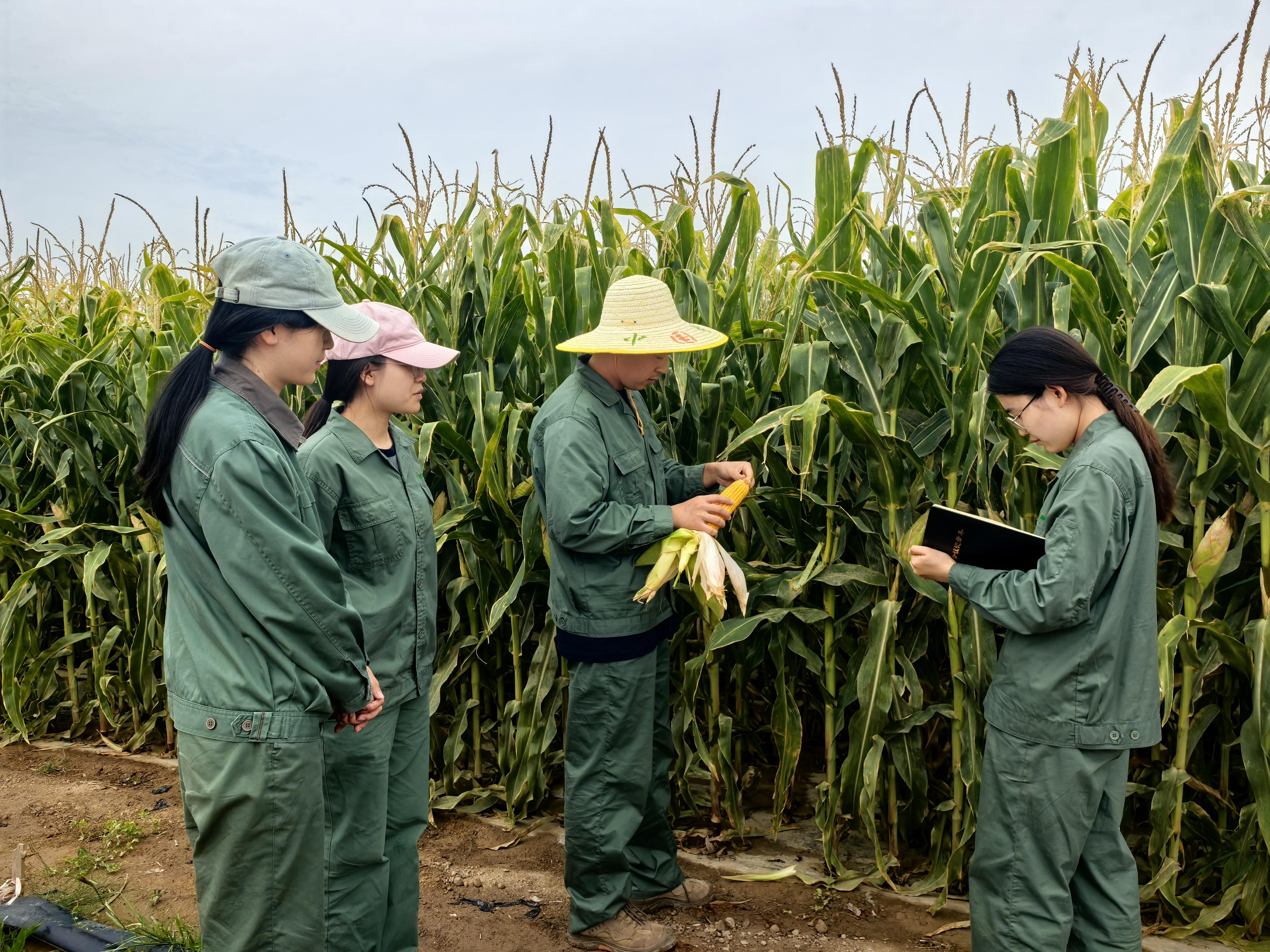 在玉米收割地上,来自中国农业大学的贺彬彬和她的三位同学,正在采取土样进行鲜土测试,身上满是阳光和泥土的印记,一点不像“城里娃”。