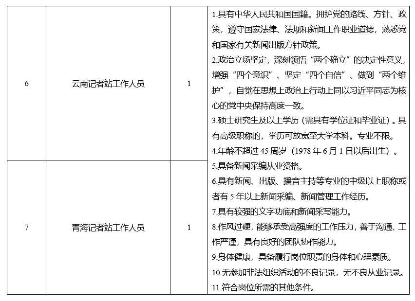 具体岗位及资格条件详见《科技日报社地方记者站公开招聘岗位信息表》。