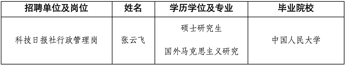 根据事业单位公开招聘工作有关规定,现将科技日报社2024年度拟聘用事业单位工作人员予以公示(第二批)。公示期间,如有问题,请向我单位反映,或直接通过中央和国家机关所属事业单位公开招聘服务平台反映。