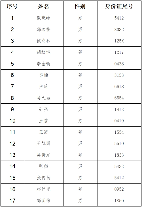 四、面试人员名单