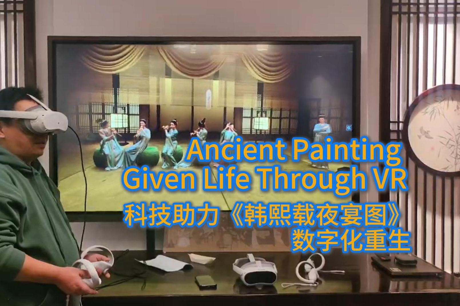 In today's world of modern technology, ancient art can be brought to life, and the result is sheer magic. The Night Revels of Han Xizai, a massive scroll painting by Southern Tang Dynasty (937–975) painter Gu Hongzhong, is one of the most famous paintings of ancient China. Thanks to a collaboration between artists like Ju Yao, a postdoctoral scholar from Tsinghua University's Academy of Arts and Design, and her mentor Lu Xiaobo, the painting was recently animated with VR and AI.