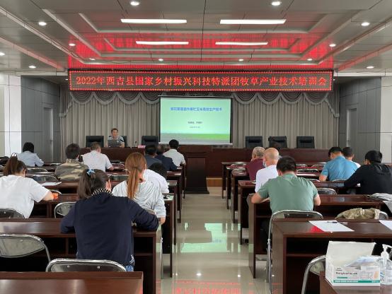 会后,科技特派团成员围绕牧草产业的发展开展了技术服务培训。张英俊围绕“紫花苜蓿套作青贮玉米高效生产技术”阐述了技术的先进性、引领性及技术要点;国家牧草产业技术体系青贮技术岗位团队成员吴哲副教授,围绕“肉牛的青贮饲料调制与饲喂方法”讲授了家畜的营养需求、青贮饲料的调制等技术;国家牧草产业技术体系放牧草地管理与草畜平衡岗团队成员、中国农业大学刘楠副教授围绕“草地可持续放牧利用理论与技术”,从国内外草畜平衡的进展、放牧草地管理技术、草畜高效生产等方面进行了授课。