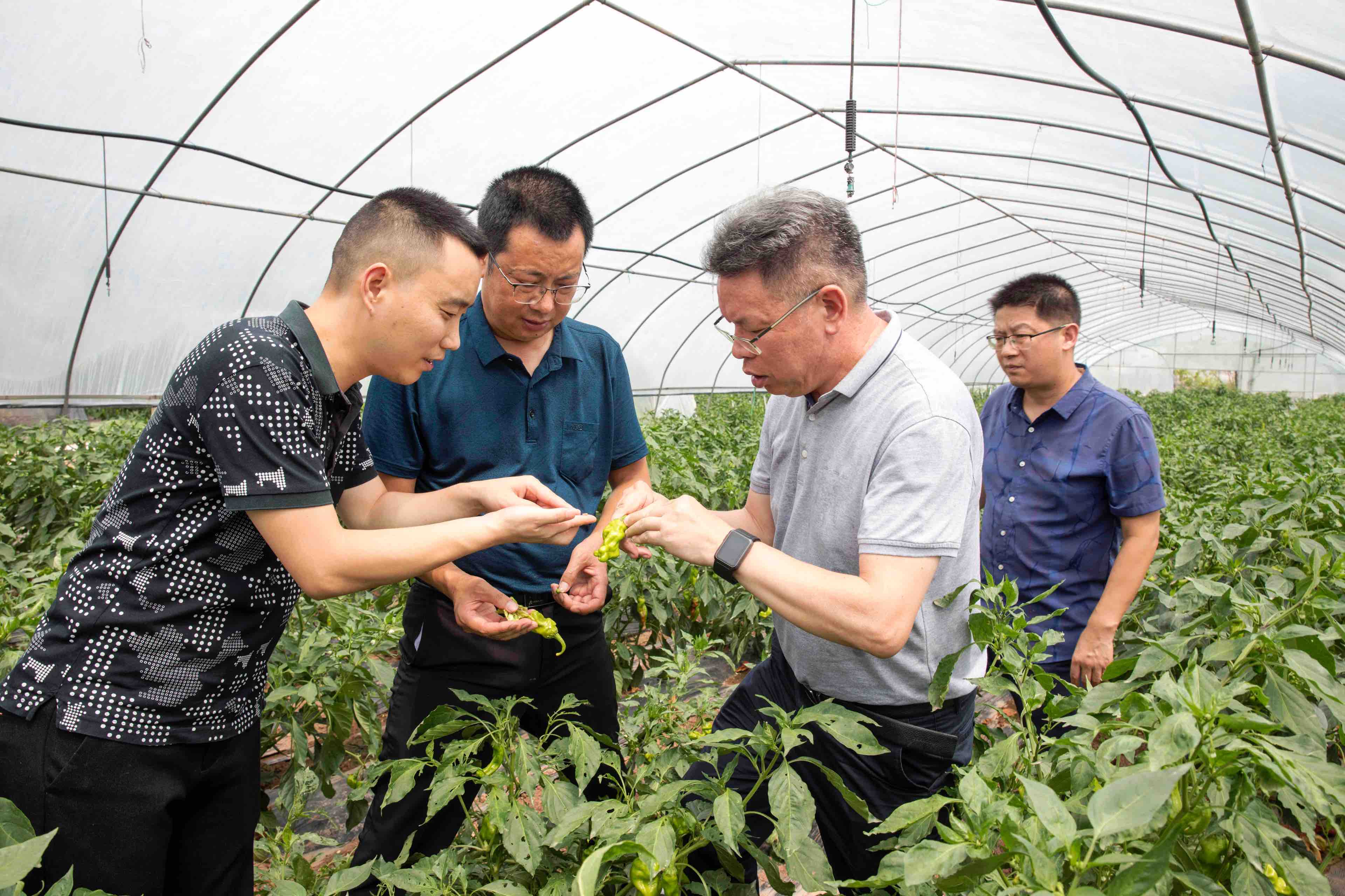 罗米云(右二)在云阳县指导加工辣椒抗旱、田间管理及病虫防治。