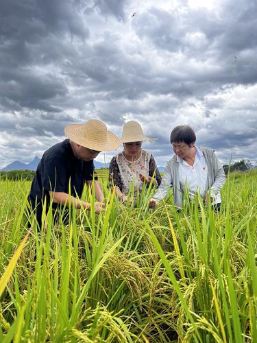 图为漳州气象局科特派团队深入平和县安厚镇水稻基地,建议农户立即抢收成熟水稻,对离成熟期比较长时间的稻田,在附近加强清沟排水工作,争取把损失降到最低。(图/卢达鹏)