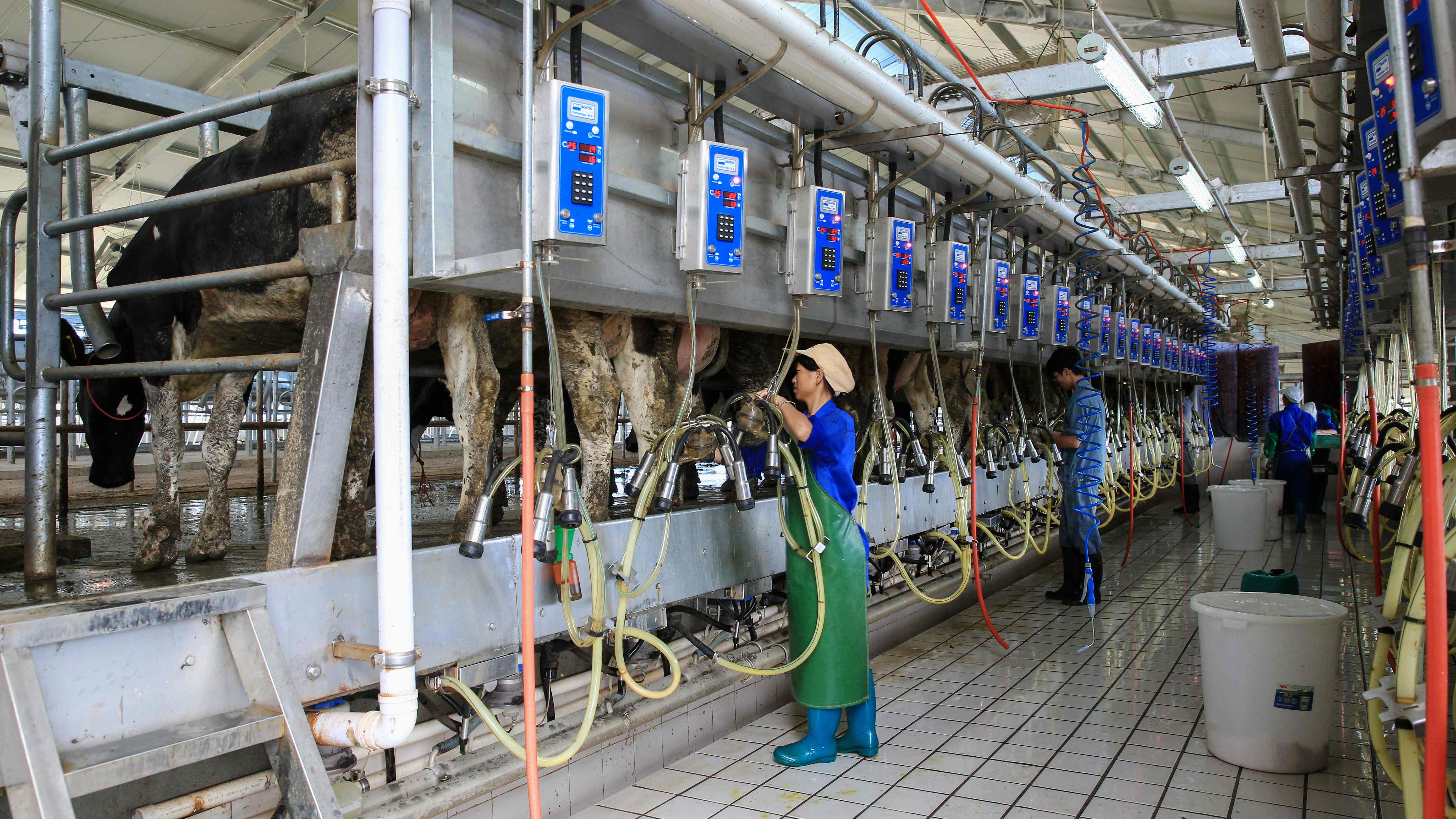 钟山镇温氏奶牛基地自动化挤奶车间。黎远伟 摄