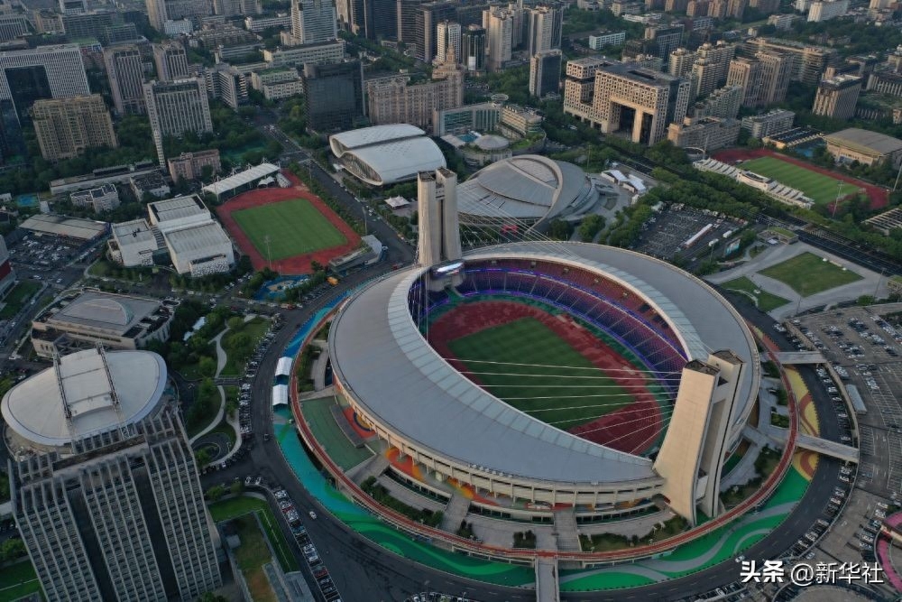 黄龙体育中心亚运场馆群(2023年8月21日摄,无人机照片)。新华社记者 黄宗治 摄