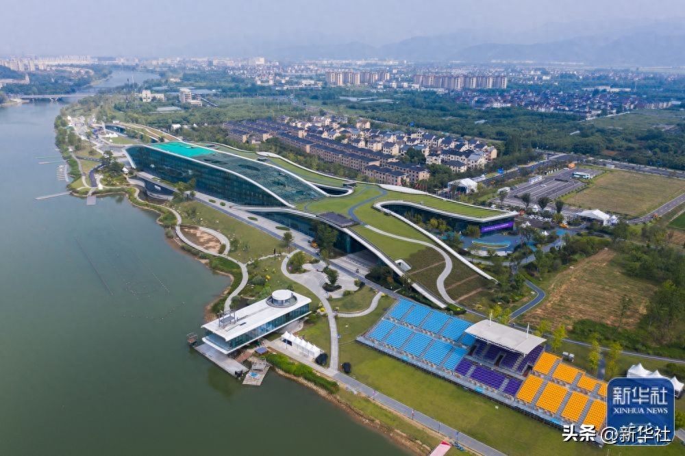 8月24日,空中俯瞰杭州富阳水上运动中心,屋顶被绿植覆盖(无人机照片)。