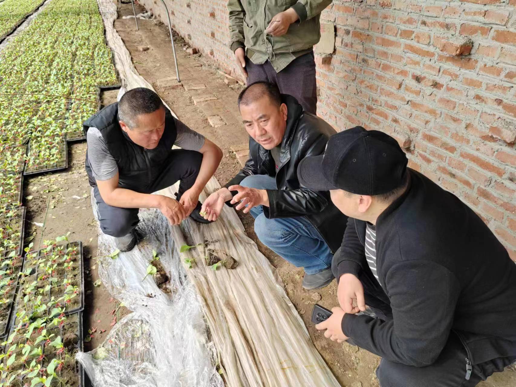 陈庆东(右二)指导甜瓜嫁接苗管理。 受访者供图