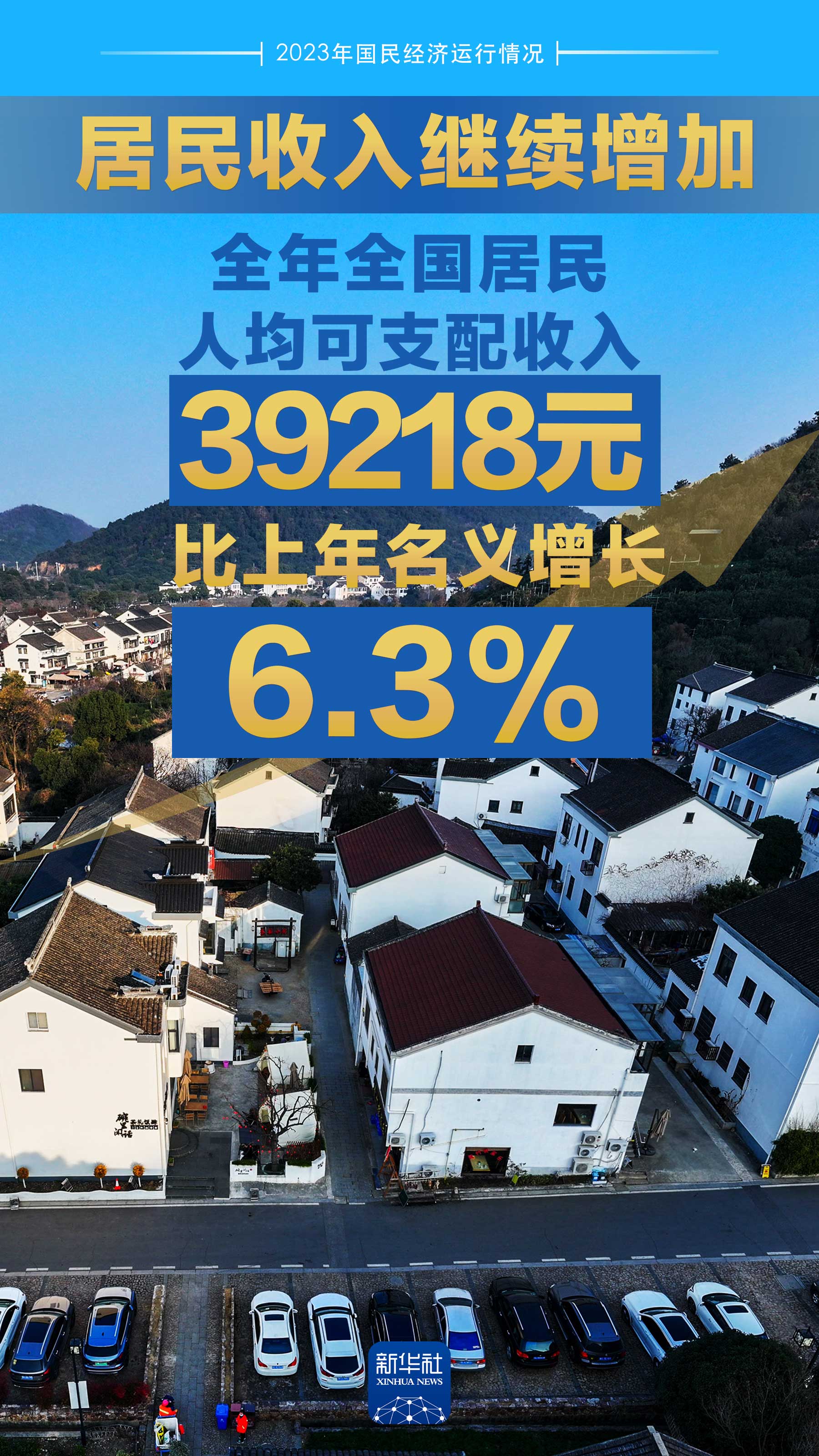 全年全国居民人均可支配收入39218元,比上年名义增长6.3%,扣除价格因素实际增长6.1%。按常住地分,城镇居民人均可支配收入51821元,比上年名义增长5.1%,扣除价格因素实际增长4.8%;农村居民人均可支配收入21691元,比上年名义增长7.7%,扣除价格因素实际增长7.6%。全国居民人均可支配收入中位数33036元,比上年名义增长5.3%。