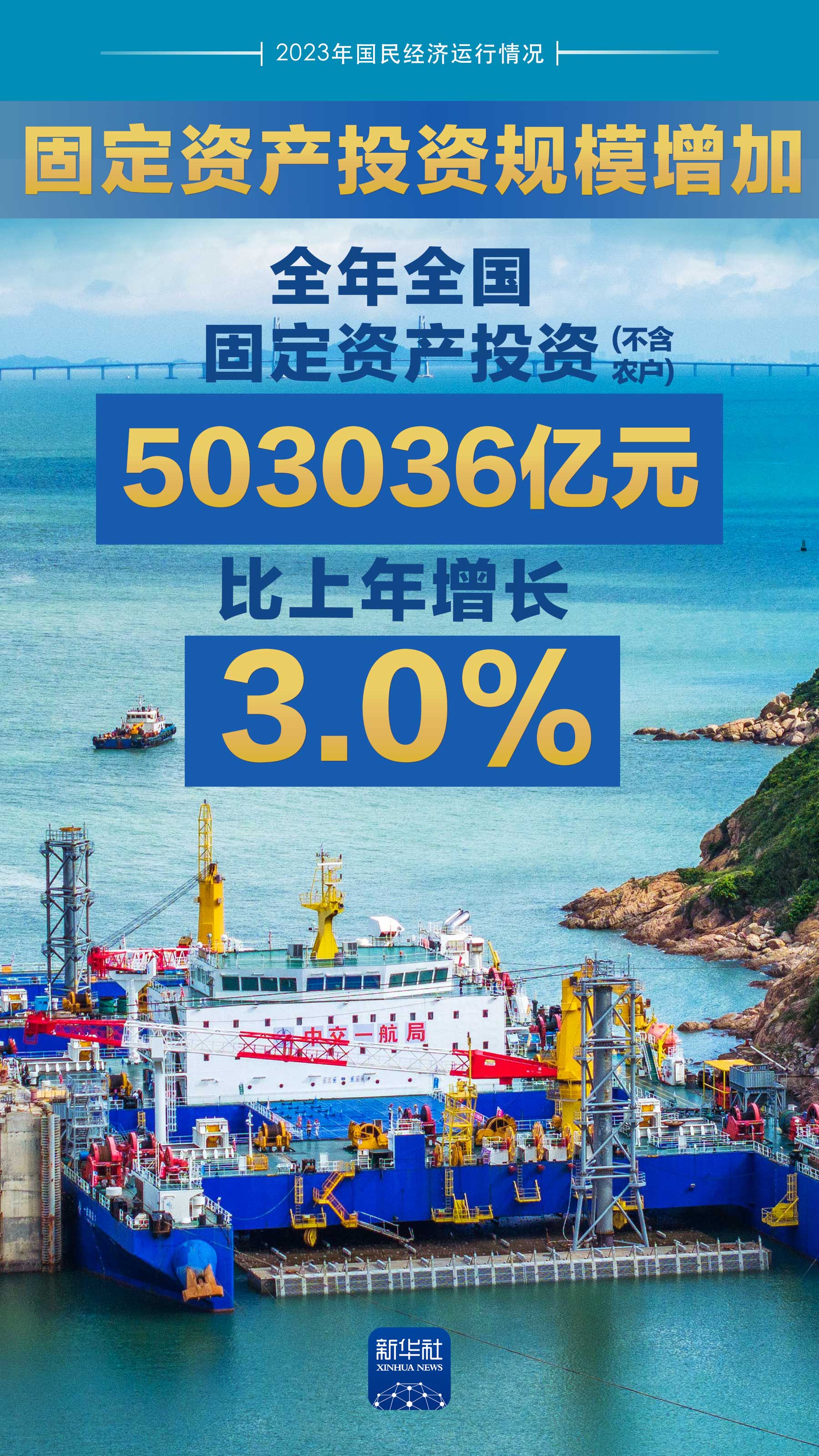 全年全国固定资产投资(不含农户)503036亿元,比上年增长3.0%;扣除价格因素影响,增长6.4%。