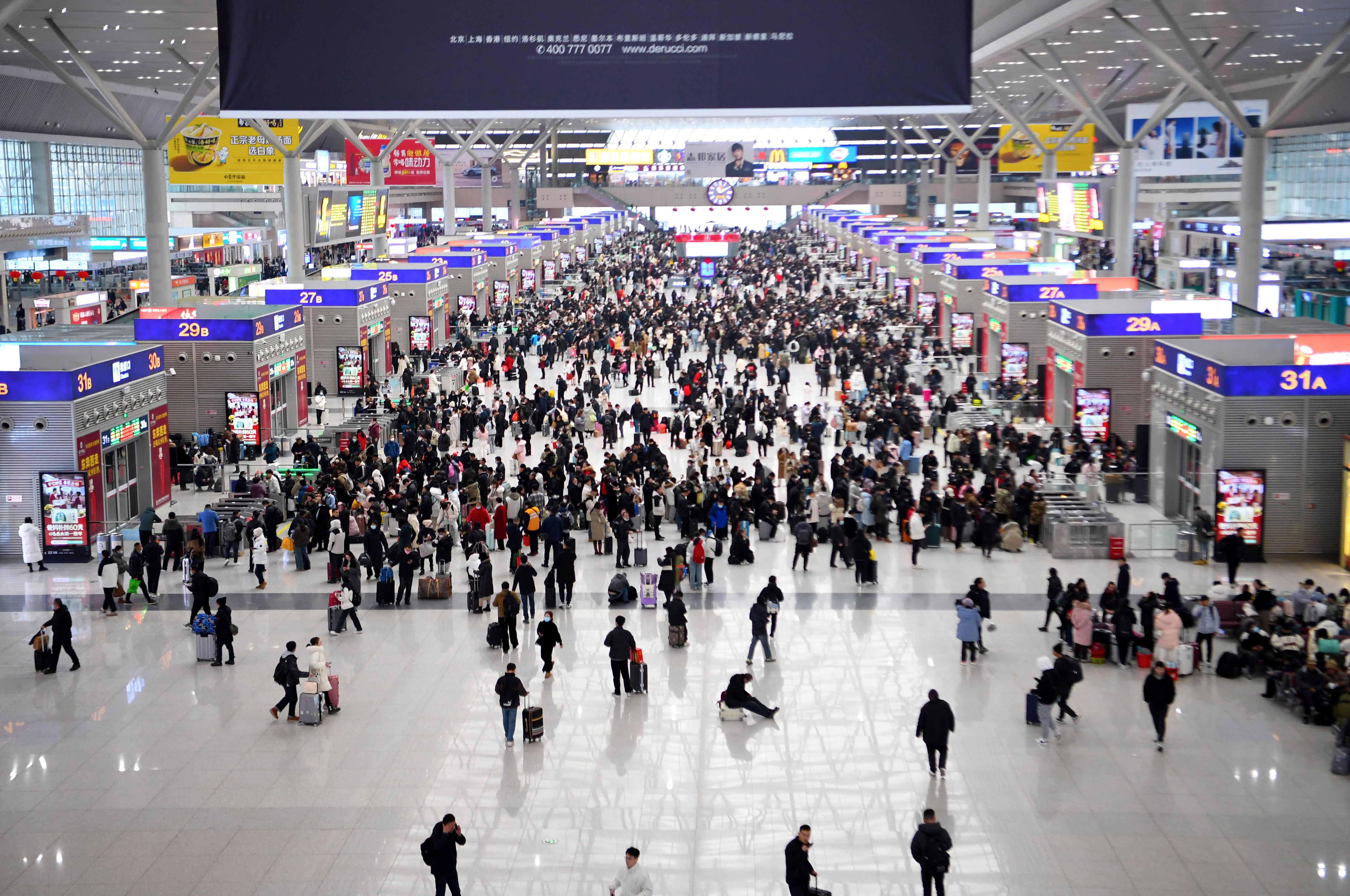 2月1日,旅客在郑州东站候车大厅内等候检票乘车。新华社记者 郝源 摄