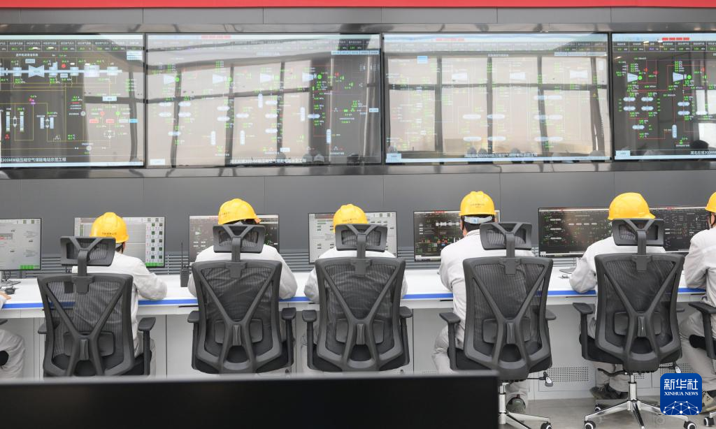 4月9日,工作人员在应城300兆瓦级压缩空气储能电站集控室工作。新华社记者 程敏 摄