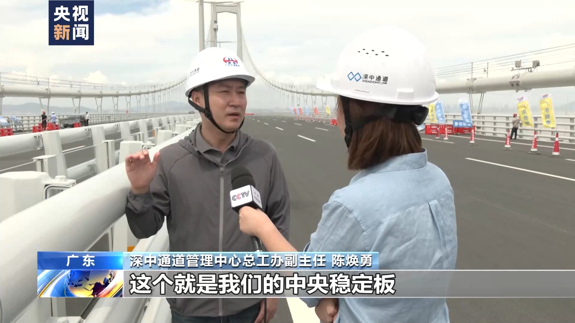 深中通道管理中心总工办副主任陈焕勇介绍,这个就是我们的中央稳定板,主要目的就是提高深中大桥抗风的稳定性。阻碍在强风作用下涡旋的发展,从而提高颤振的稳定性。