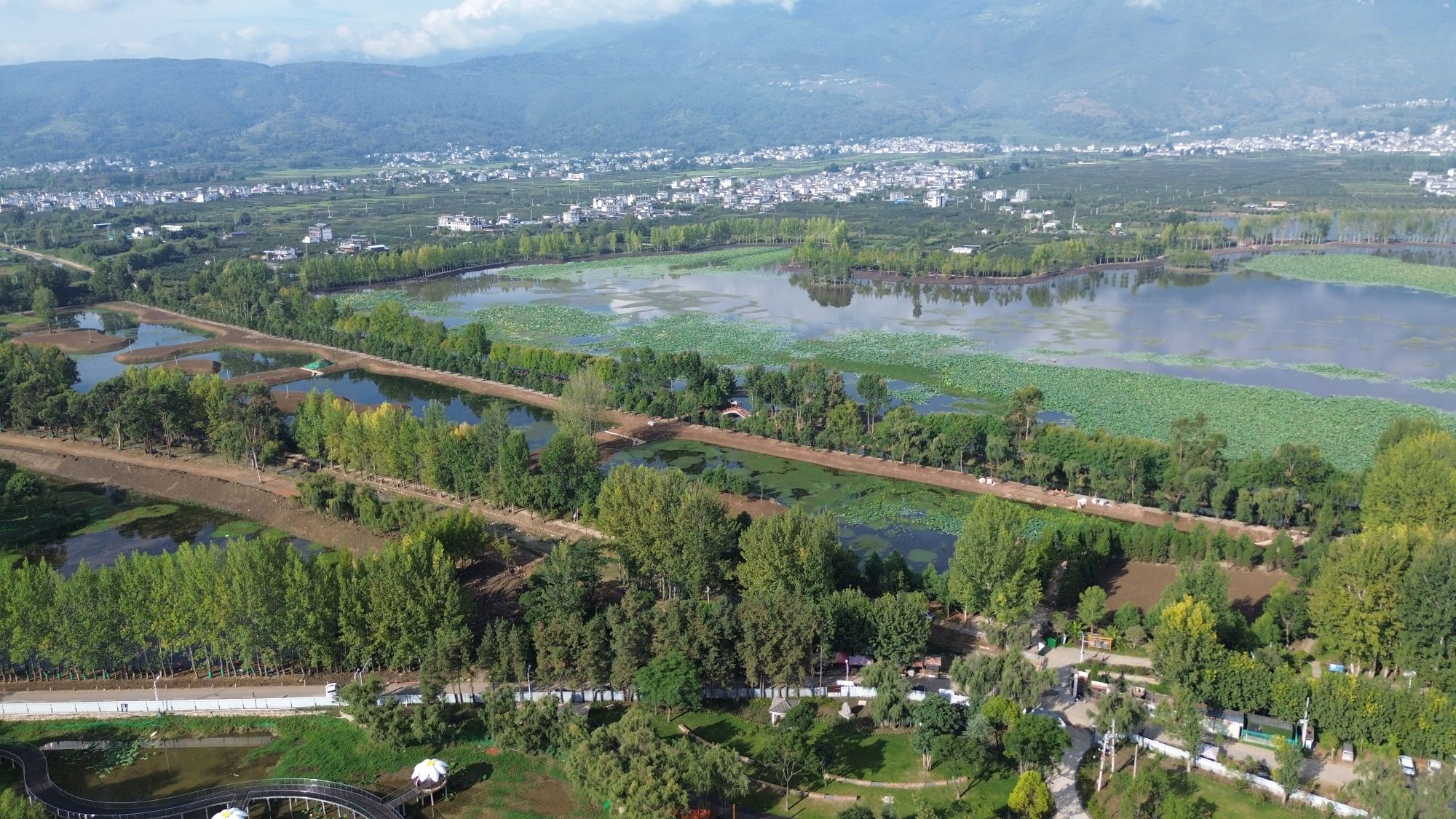 近一年来,防洪保安全工程、宜居水环境工程、健康水生态工程、先进水文化工程、智慧水管控工程、助力流域区域发展6大项目25个分项工程,在洱源县紧锣密鼓实施。茈碧湖退塘还湖、退房还湖、退滩地还湖面积达513.8亩;当地强化周边湿地生态建设,建成入湖口湿地981.5亩,环湖湿地2550亩,持续提升洱海源头水质;通过新建和改扩建污水处理站,提升污水处理能力,有效削减入湖污染负荷。