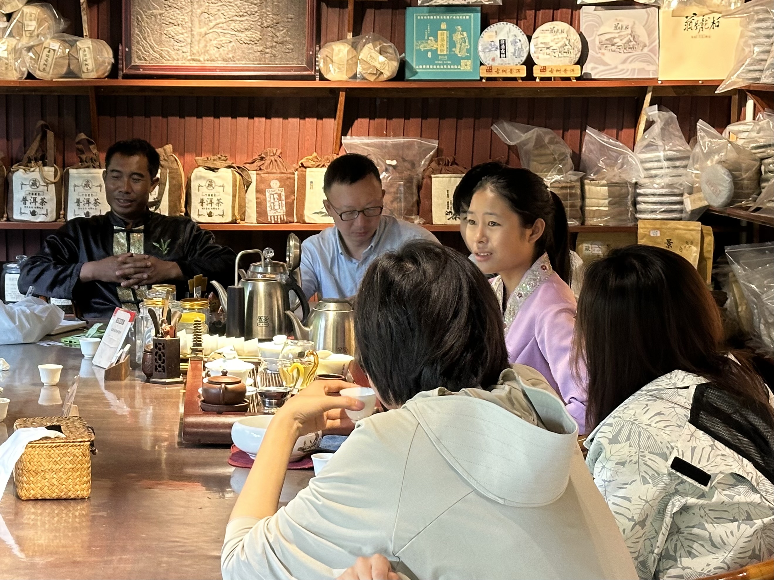 “我从小跟着父母采茶、做茶、卖茶,最熟悉就是茶园生活,最擅长的也是制售茶叶。”今年23岁的布朗族姑娘而丙已是翁基腊甘坊茶店的“当家人”,2020年高中毕业后,而丙没有选择继续读书,而是回到翁基古寨,在不断摸索中开启自己的“茶旅融合”之路。