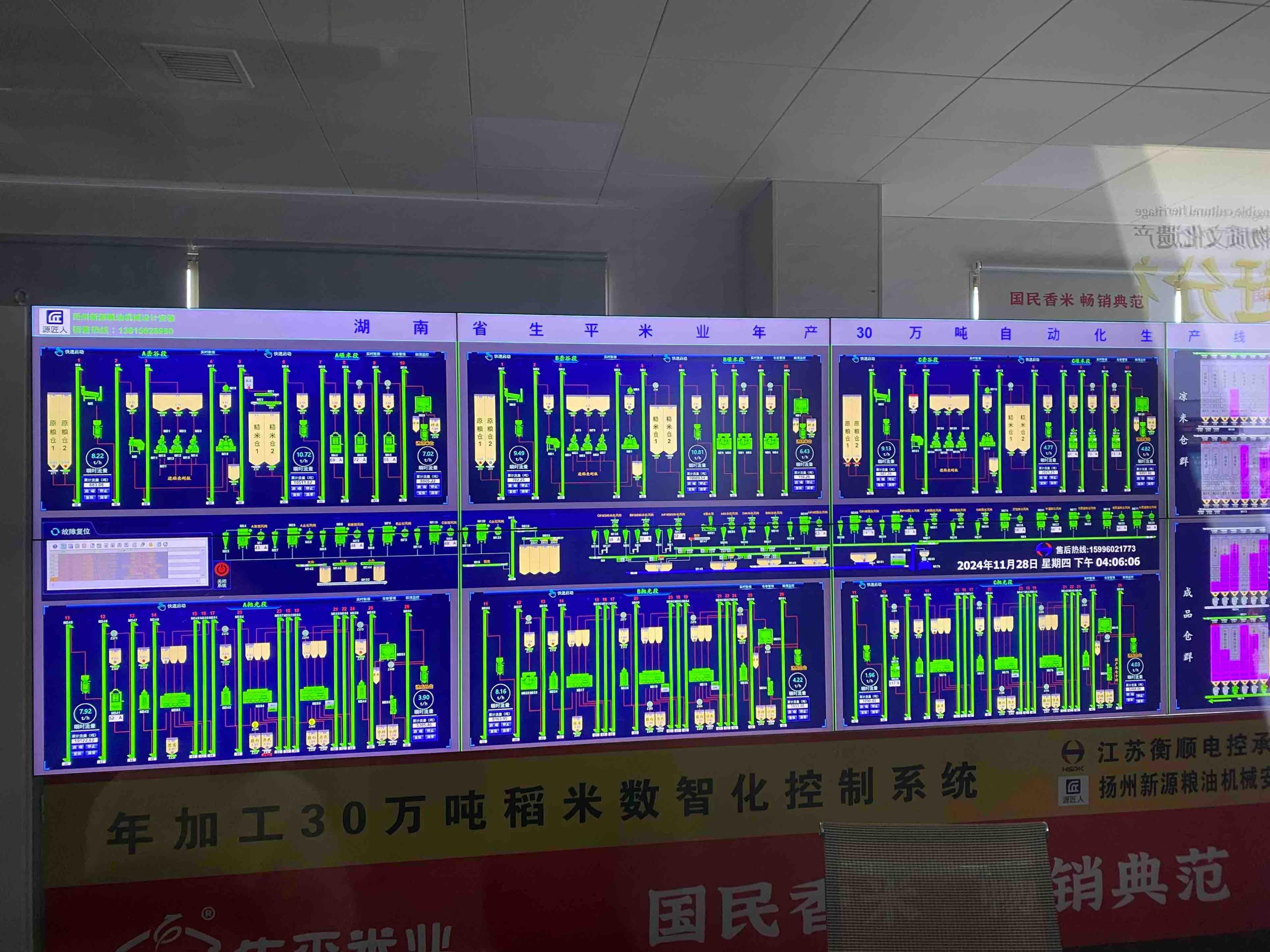 生平米业办公室主任尹薷狺介绍,中控室是这座五层楼高的5G智能车间的“大脑”,技术人员只需坐在中控室,就可全程监控生产线的运行情况,实时统计生产数据,及时发现并处理故障,极大降低了人力成本。