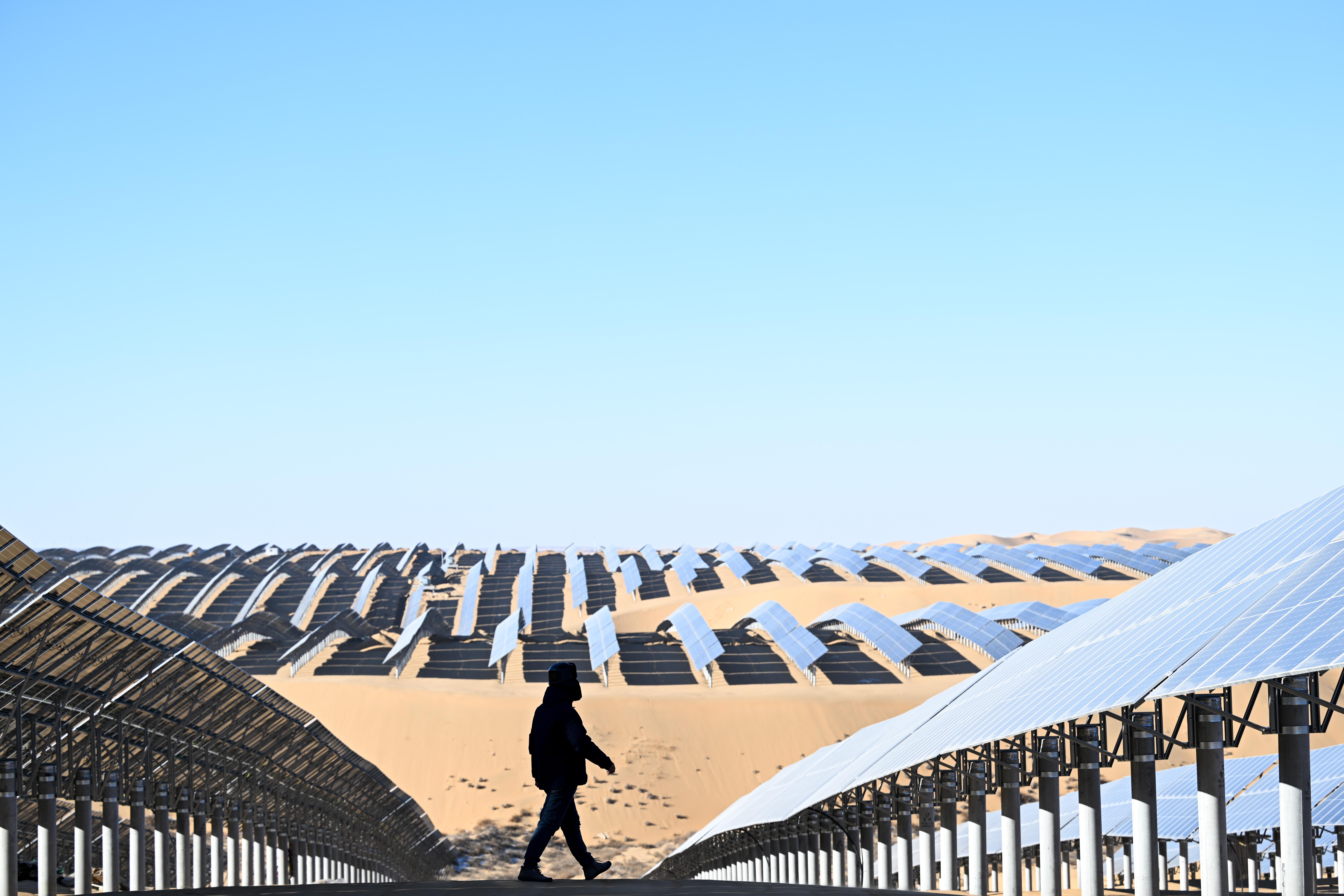 在甘肃敦煌的广阔沙地上,矗立着一座260米的高塔,它的周围环绕着12000多面定日镜。利用太阳能,这座熔盐塔式光热电站能够24小时不间断发电。