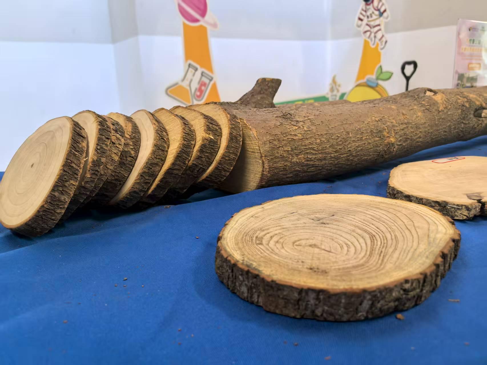 2017年,钱嘉彧所在学校校外进行道路改造,不少树枝被修剪。他敏锐意识到,这是让孩子研究年轮的绝佳“教材”,干脆拖了一段树枝回学校。