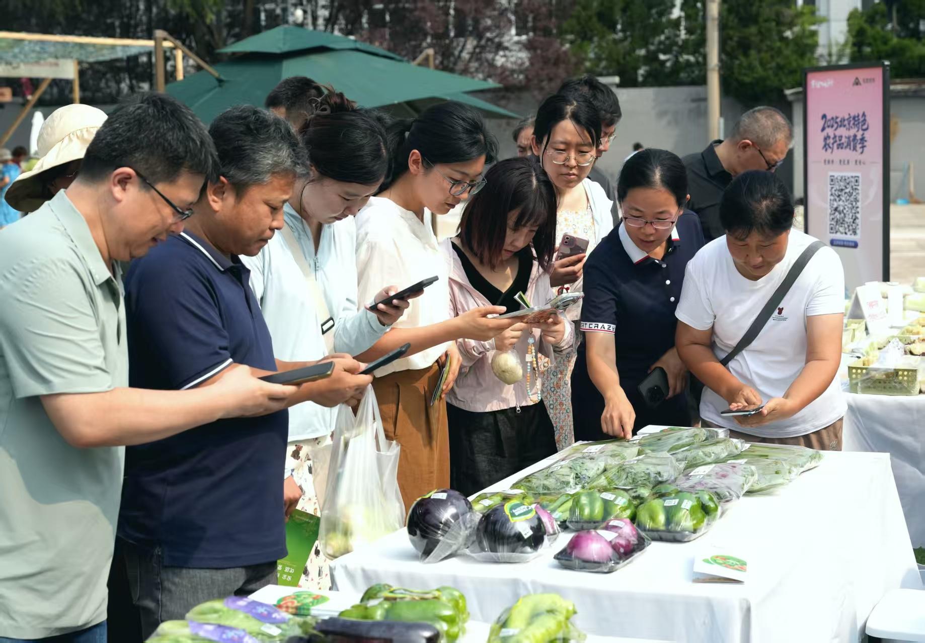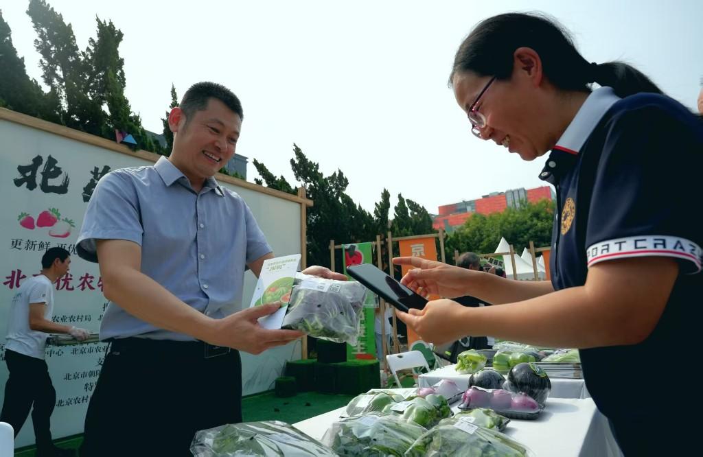8月2日,在“北苑路88号”北京优农特色农产品市集上,市民拿起一盒西红柿,扫描包装上的“JN码”,屏幕上即可显示出该农产品的承诺达标合格证、主体信息、产品信息3个词条,以图片、文字形式详细展示该西红柿生产的农芯、农环、农投、农艺、农技、农机、农安7个环节的全过程信息。