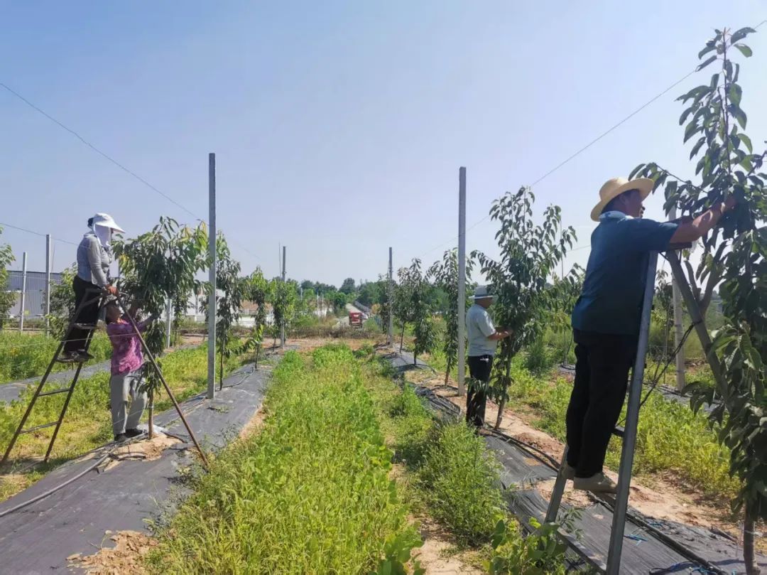 接手果园后,张坡村成立管理专班,用“绣花功夫”向精细化管理要效益。从精准拉枝整形、科学套袋防护到测土配方施肥,每一项都一丝不苟。精细修剪确保林间通风透光,果实套袋使虫害损失减少约30%,测土配方让养分“精准滴灌”;创新推行“果树+大豆”套种模式,既提升土地复种指数,又借大豆根瘤菌改良土壤。新架设的防护围栏与全天候智能声光驱鸟设备,构筑起“地上有篱笆、空中有声光”的立体生态防护网。
