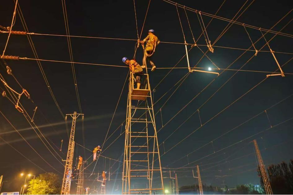 “过去高空调整要爬5次接触网,费时又费力。”项目负责人金拓介绍,新工艺使高空重复作业减少60%,天窗作业时间压缩40%,仅通过预配化安装即可实现一次成型。以“一次做对、一次到位”为核心,项目部在营业线施工中达成“零返工、零延误、零干扰”目标,开创了枢纽地区接触网“天窗点”高效施工新范式。