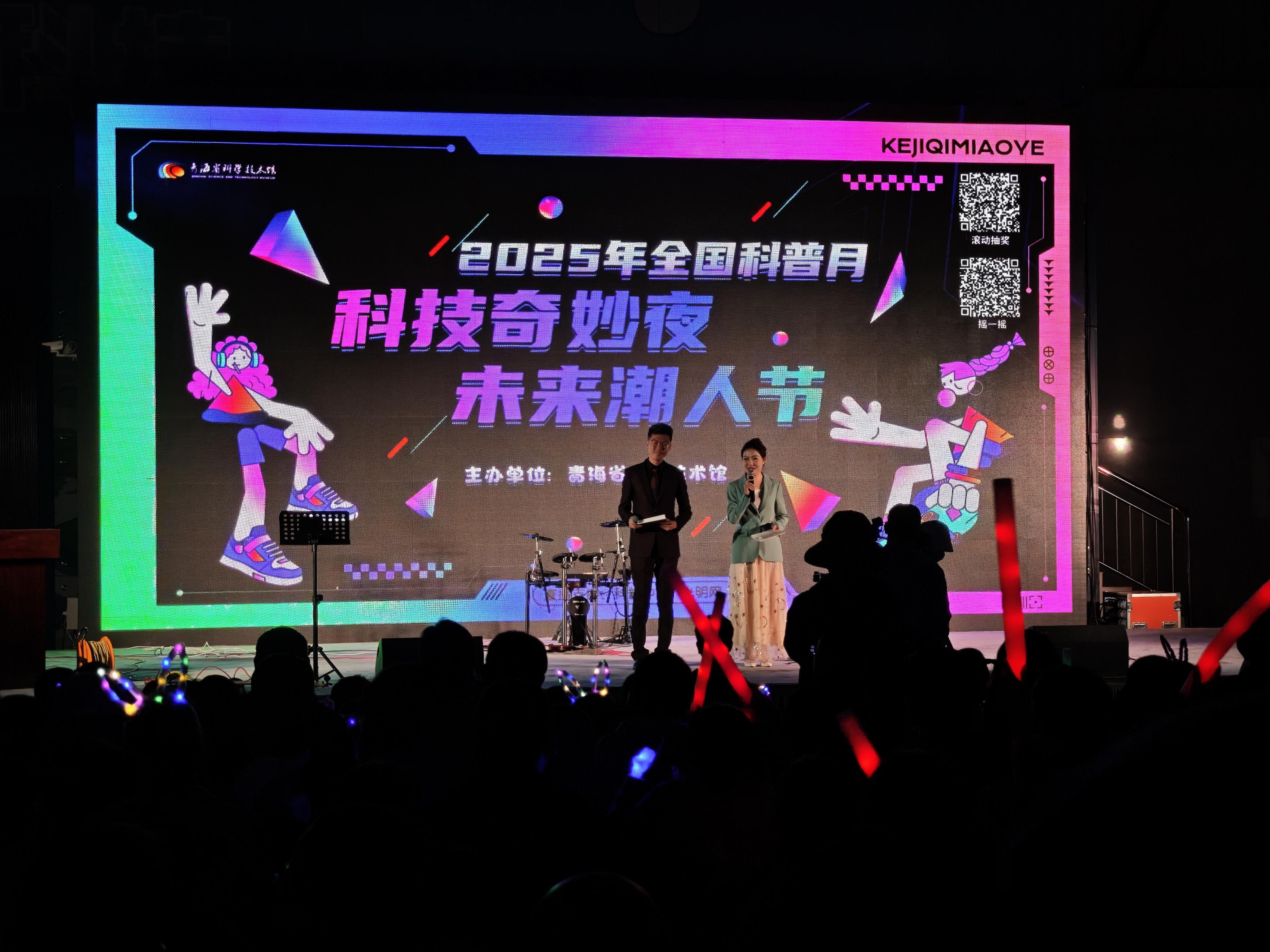 19时许,主舞台灯光渐暗,“潮能觉醒——玩家奇妙夜”活动正式拉开帷幕。青年乐队的激情演奏与街舞演员的动感表演,瞬间点燃全场。随后,2025年青海省科学实验展演汇演中的优秀作品轮番亮相。
