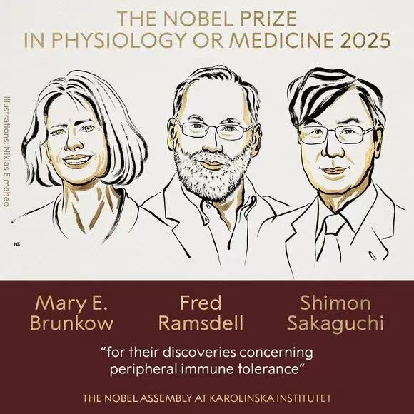 因在外周免疫耐受方面的基础发现,美国科学家玛丽·E·布伦科(Mary E.Brunkow)、弗雷德·拉姆斯迪尔(Fred Ramsdell)和日本科学家坂口志文(Shimon Sakaguchi)共同获得2025年诺贝尔生理学或医学奖。诺贝尔基金会揭晓奖项并公布获奖理由:他们的发现对于理解免疫系统运作具有决定性意义。