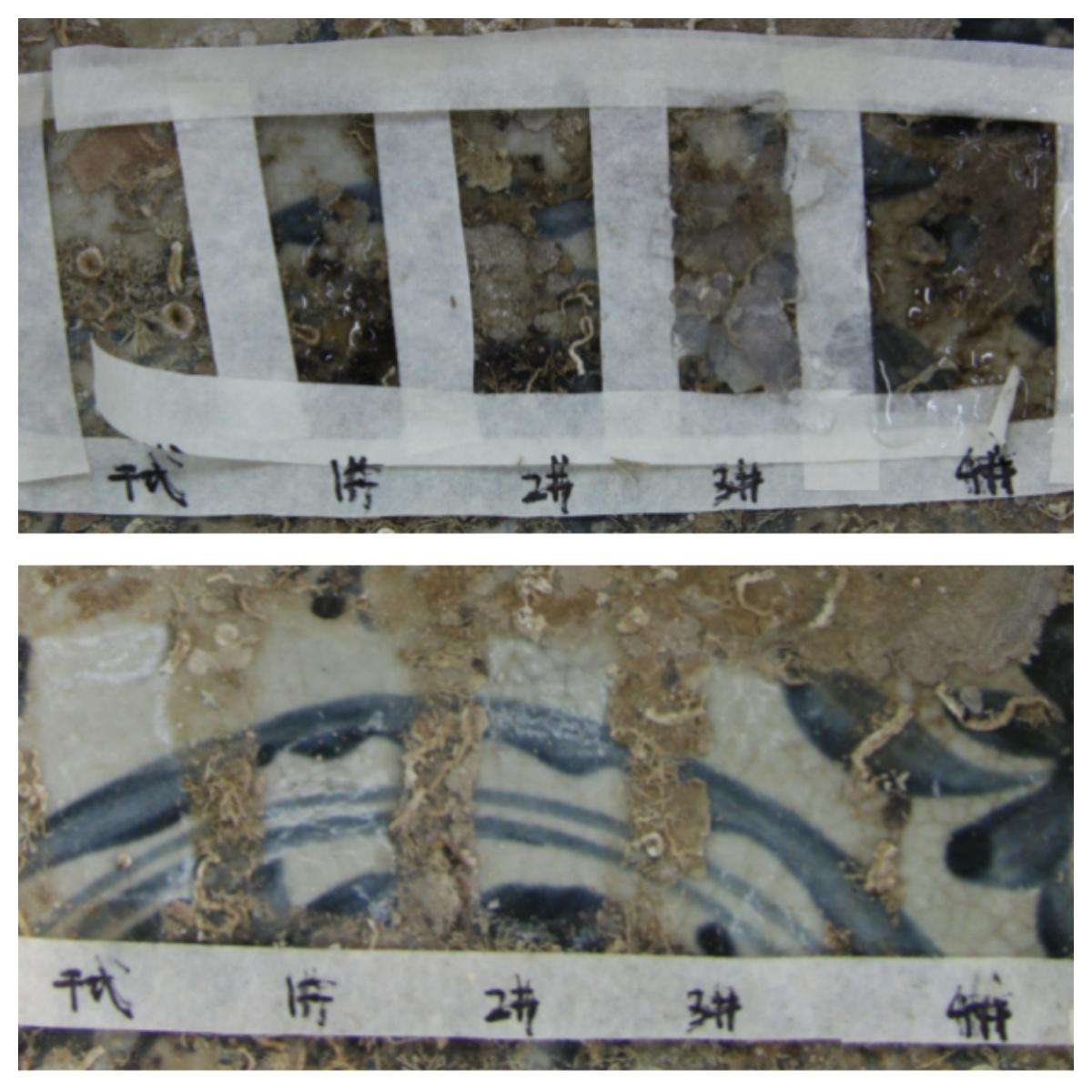瓷器表面是海水侵蚀下形成的附着物,这些由泥沙、海洋生物残骸和金属锈迹等形成的凝结物,不仅遮蔽了文物的原始纹饰,也让人看不清文物的原本样貌,影响文物信息的提取,其持续的物理化学作用还会对文物造成进一步的腐蚀破坏。当务之急是要给这些文物好好“洗个澡”。