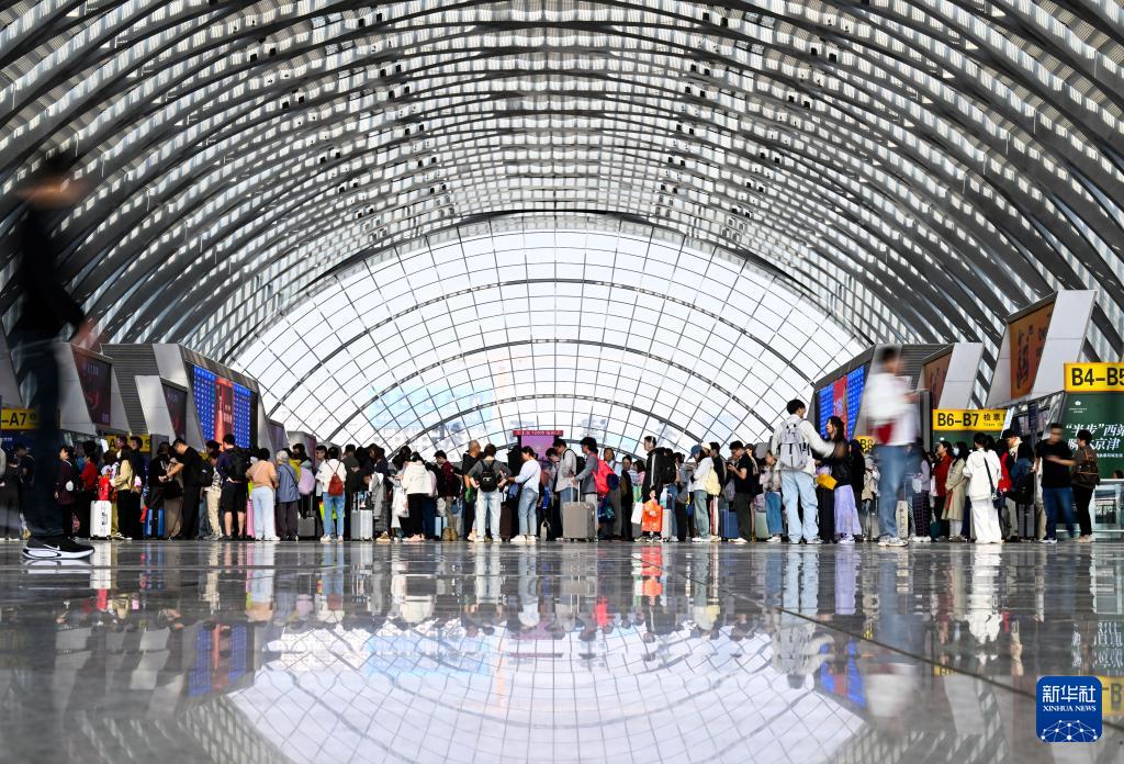 10月7日,国庆中秋假期进入尾声,各地返程客流攀升。