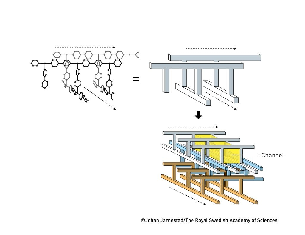 此后,罗布森陆续合成出多种含空腔的分子网络,并证明这些结构内部的离子可以互换,从而让物质进出。他展示了可按需设计的分子晶体,并提出这种材料可用作催化剂。尽管早期材料脆弱、易分解,被认为“没用”,但罗布森已打开了“分子建筑”的大门。