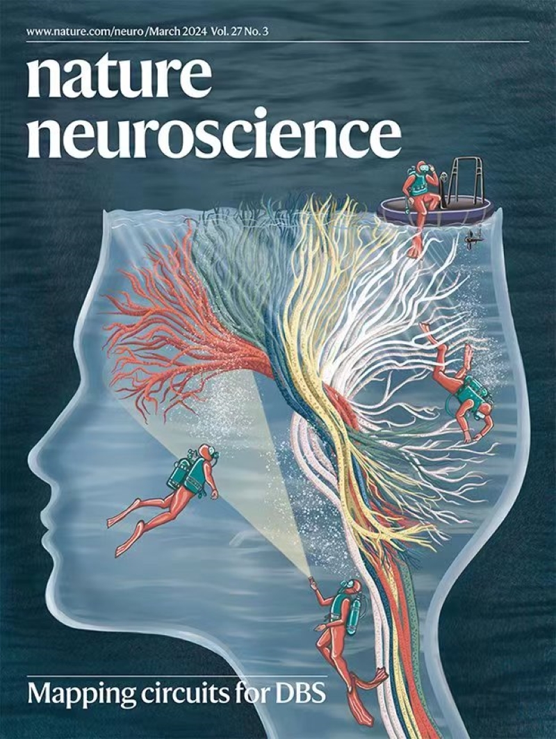 发表于《自然·神经科学》的封面文章《利用深部脑刺激绘制额叶皮层功能失调回路》。