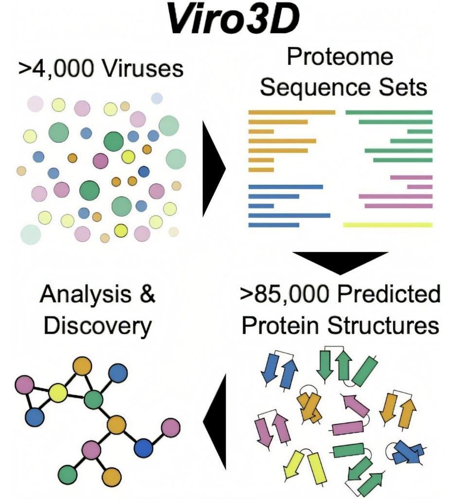 为加速这一进程,研究团队构建了涵盖数千种人与动物病毒蛋白的新型数据库。Viro3D收录了来自4000多种人与动物病毒的8.5万种蛋白的高质量结构模型,是目前规模最大的人与动物病毒完整结构数据库,将现有相关领域知识扩展了30倍。