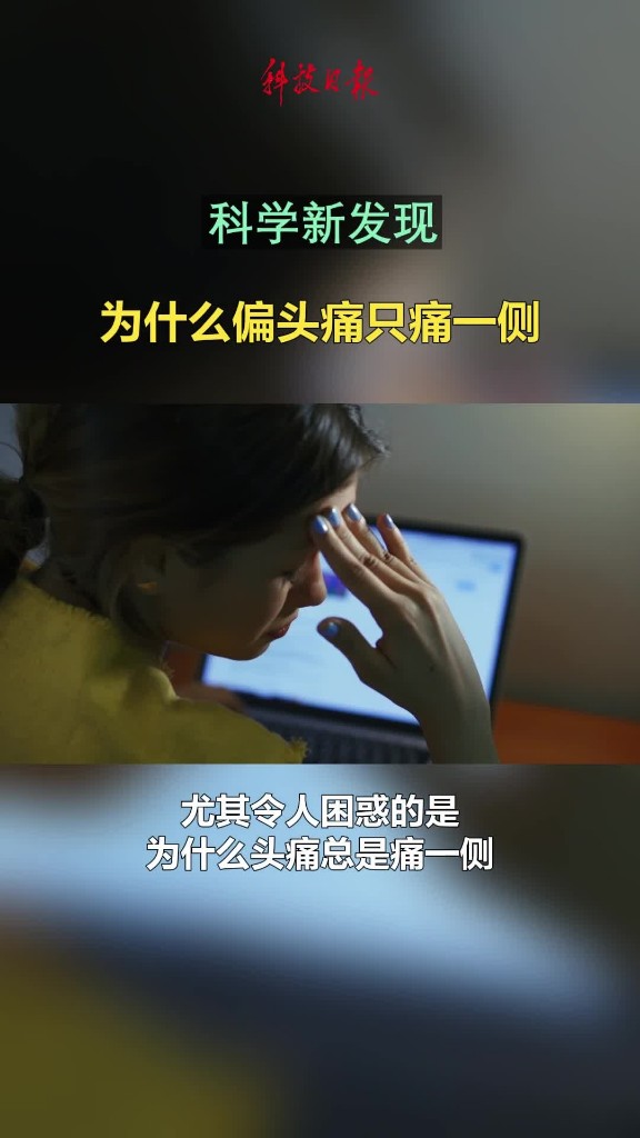 偏头痛困扰着许多人,尤其令人困惑的是,为什么头痛总是痛一侧?据最新一期《科学》杂志报道,丹麦哥本哈根大学的研究人员通过小鼠实验首次证明,在先兆性偏头痛发作期间,大脑释放的蛋白质会随着脑脊髓液流动,到达与头痛相关的疼痛信号神经并将其激活,从而引发疼痛。此外,这些物质不会被运送到整个脑内空间,而主要被运送到同一侧的感觉系统,这就是导致一侧头痛的原因。