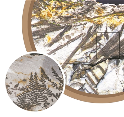 而在6号与7号煤层中间是一层灰白色的火山岩,3亿年前的远古森林就藏身其中。亿万年来,地球板块运动和巨大的地质压力,已将几十米高的森林封存到了约0.65米厚。但是剥离碎石后,各种植物仍清晰可见。